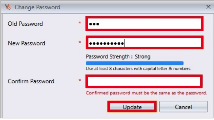 A12: You may change the default login password by going to the TCMSv3 icon > Change Password > Change password box will be prompted out - fill in the password details > Click Update once you finished changing the password