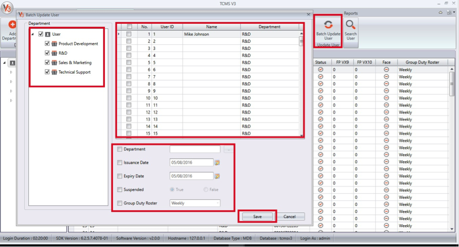 A14: You can update multiple users’ details by using the Batch Update User option. You can refer below for options offered in Batch Update User tab: You may select the users by department or individual users > Select the options that you want to update by batch > Click Save