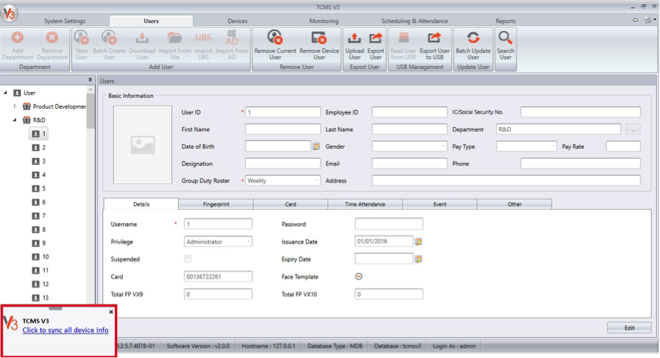 Once you make any changes [eg: add user’s password] > Click to sync all device info message prompted out > Click Start Synchronize > Choose which devices to be updated with recent changes > Click Start Synchronize to update the changes
