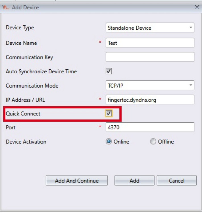 A6: Yes, you can use Dynamic DNS or Port Forwarding to connect your remote devices to your TCMS V3. To connect devices that are using Dynamic DNS or Port Forwarding, you must check the “Quick Connect” when you add your devices.