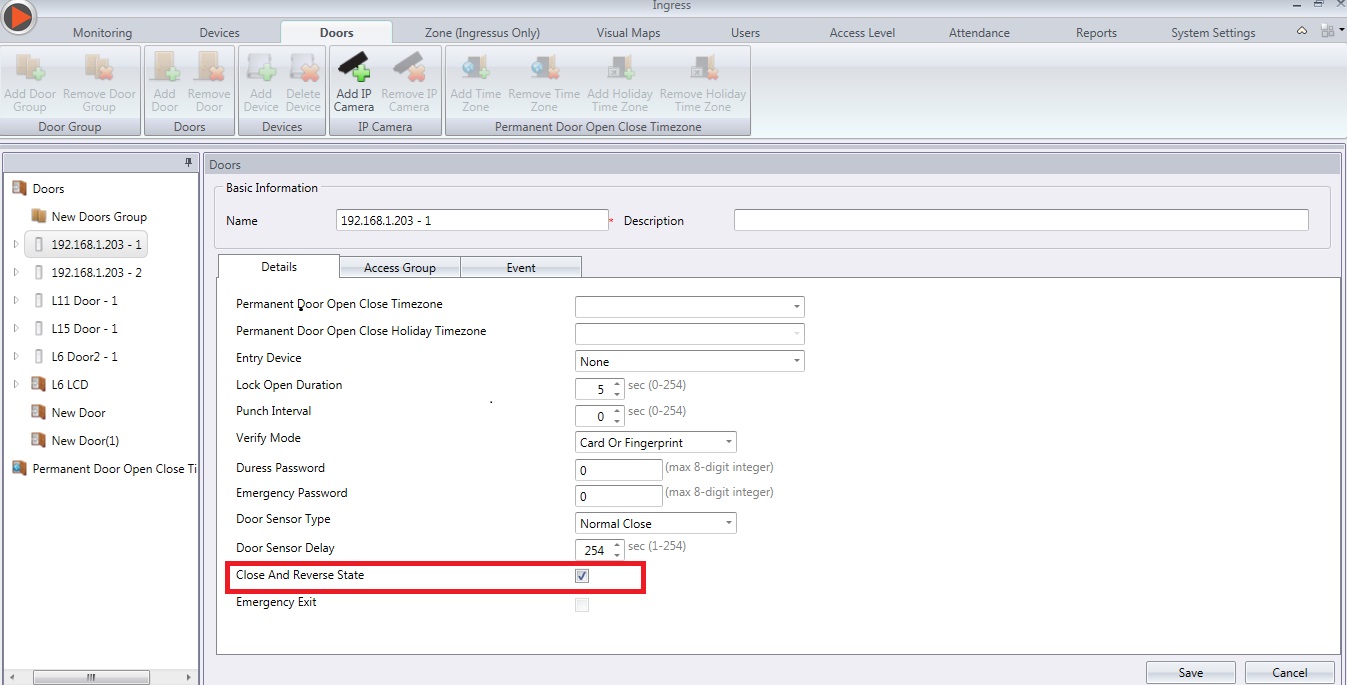 This feature that we are about to introduce is called “Close and Reverse State” which is used to lock the door once the door sensor detects that it has been closed. This feature will override the “Lock Open Duration” which has been pre-configured for a door.