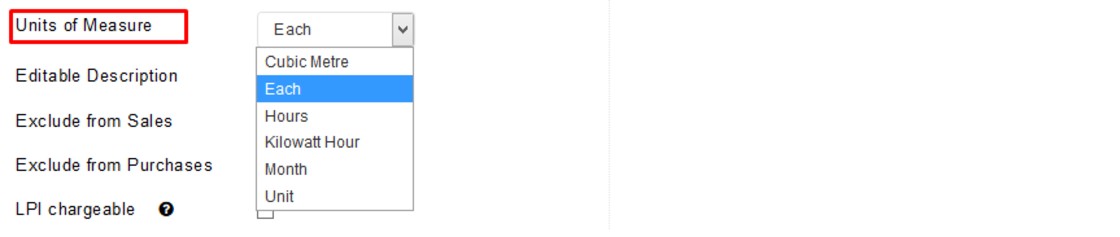 Select the Unit of Measure for the new Item. For this Rental of Multipurpose Hall, we set as Each.