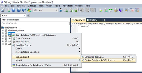 Backup/Restore Ingress Database using 3rd Party MySQL Manager Tool
