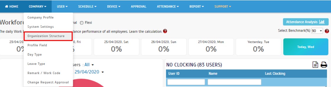 1. Go to ‘COMPANY’ > ‘Organization Structure’
