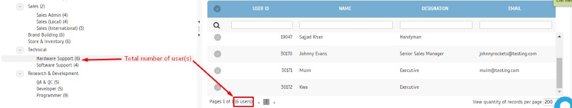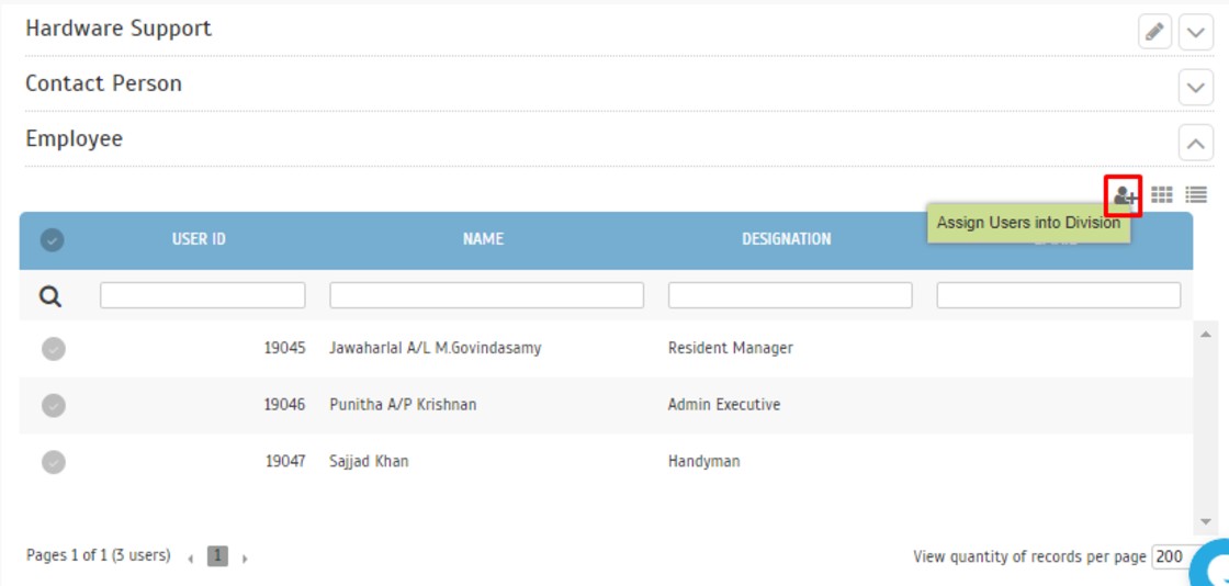 5. Once the user(s) has been assigned into the division, the total number of users ‘(x)’ will be updated accordingly