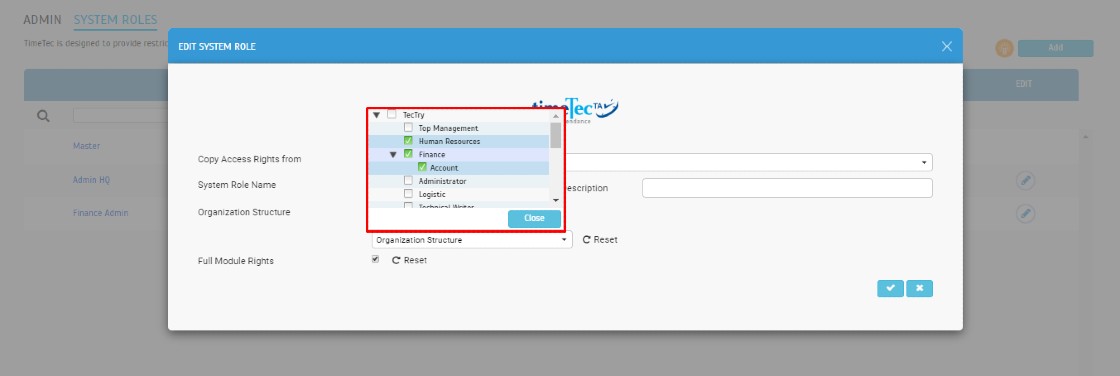 We believed each organization has its own System Role and the role of Admin will be different depending on the position and assigned department. By constructing a proper Organization Structure, you can easily customize the system role of each admin based on the respective access (view or management) in the selected department/division. Without an Organization Structure, you won’t be able to customize the system role based on department/division.
