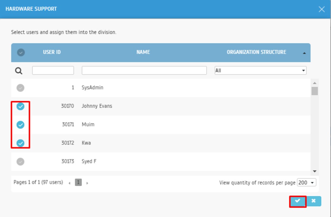 *Note: Please ensure you have selected the correct division before assigning the users into division