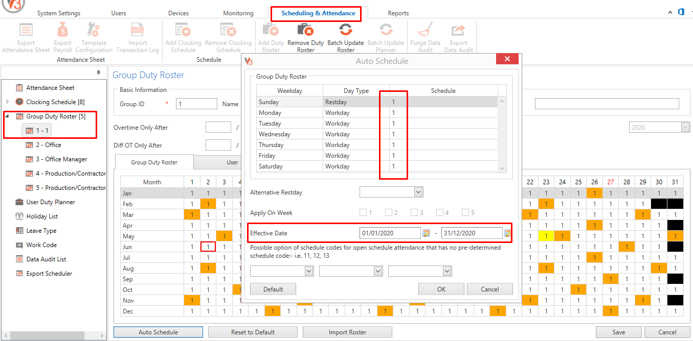 7. Finally, here is the last option and setting which you can attempt with. Please make sure the Group Duty Roster that you have used is not blank. Otherwise, you can try to reschedule your roster by selecting Group Duty Roster > select Roster > Edit > Auto Schedule > select dedicated schedule and Date range > Ok.