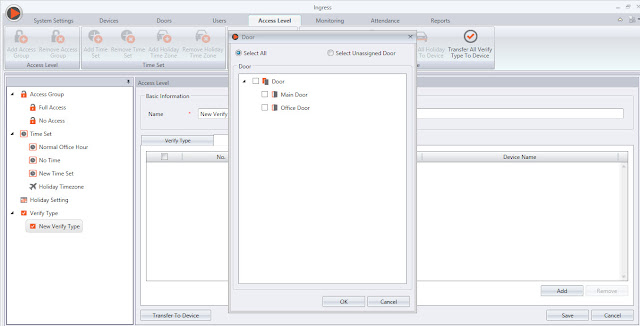 1. Click on Door tab > Click Add to select doors applicable for this verification method