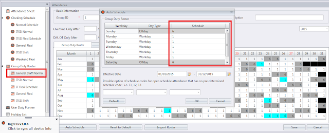 5. Go to Group Duty Roster > Edit > Auto Schedule, select new Flexi Schedule for Weekend.