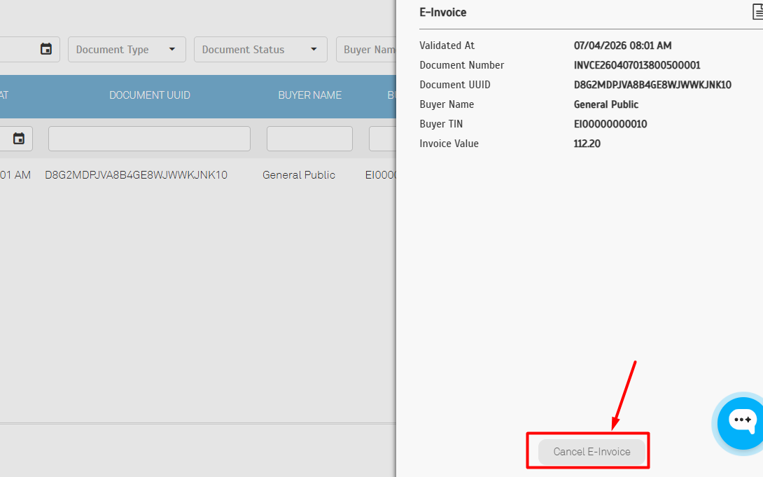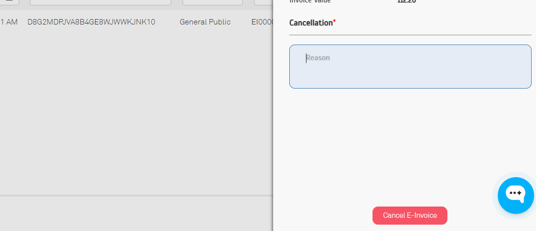 - Click Cancel E-Invoice and insert the reason