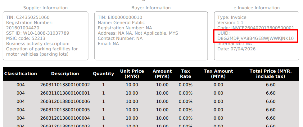 - Get the UUID number from the e-Invoice