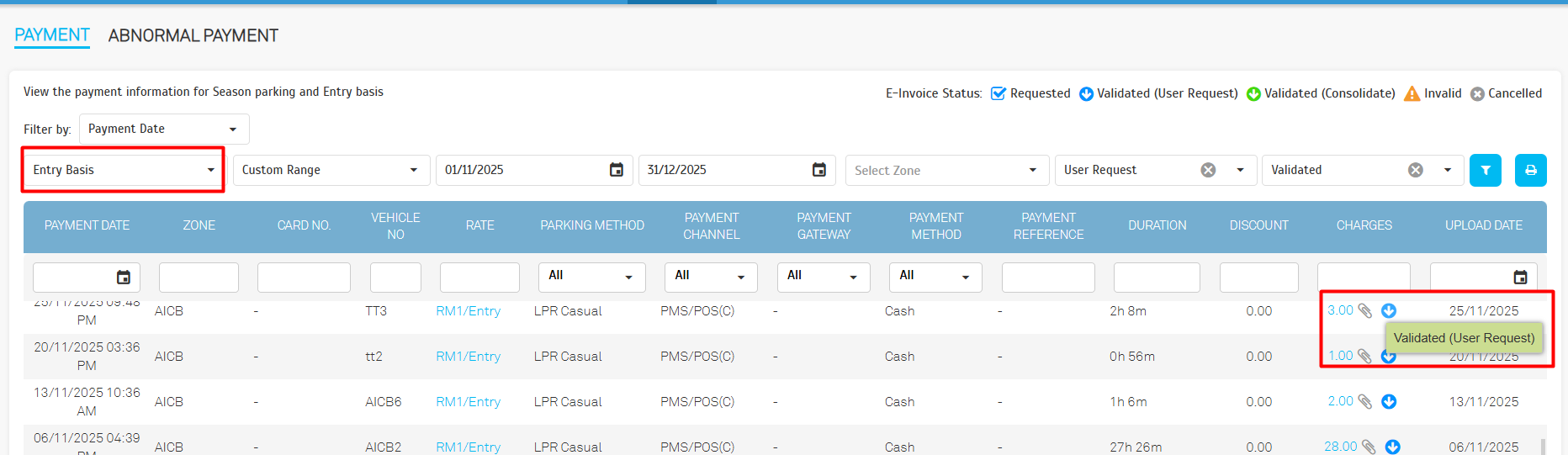 - Go to Record > Payment and search customer's car plate or card number or name