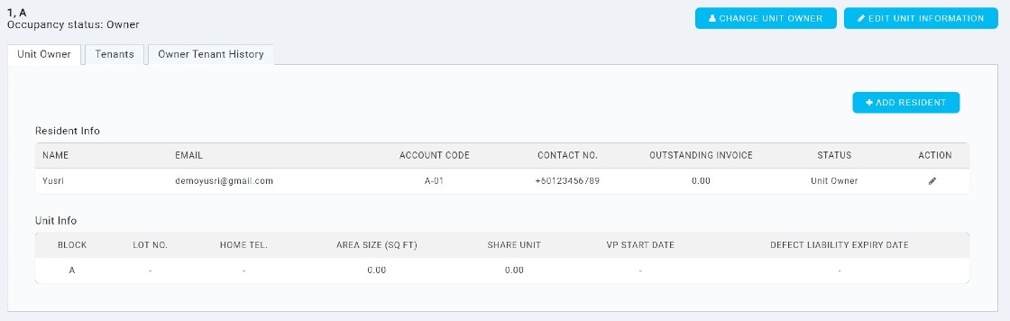 2. Click “Change Unit Owner” > Insert all the correct information > Click Save