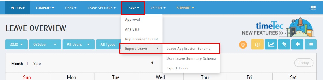 1. In your TimeTec Leave account, go to Leave > Export Leave> Click on Leave Application Schema.