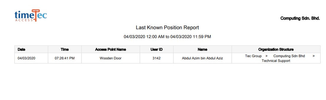 Step 6 - The report will present the number of employees who are still remaining in the building. You may click on the download icon to download the report in PDF format or click the print icon to directly print out the report.Step 7 - Another report that you can use to learn if an employee is still inside the building is by clicking on the ‘Last Known Position Report’.