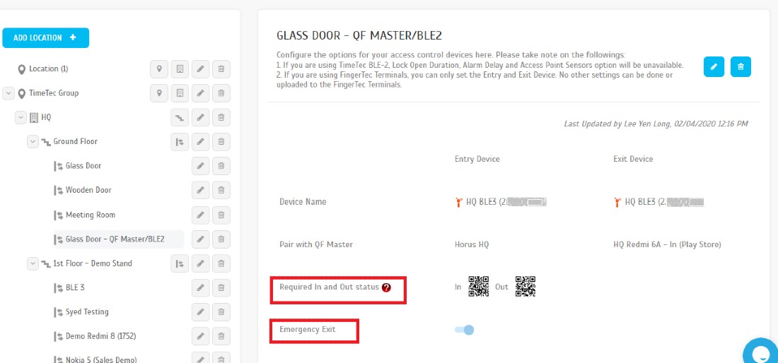 Step 3 - Enable the ‘Required In and Out status’ and ‘Emergency Exit’ on the Main Door and Main Exit of the building.
