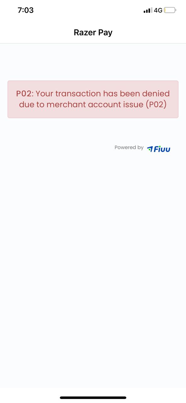 Fiuu Gateway Error Code "P02 : Your transaction has been denied due to merchant account issue (P02)”