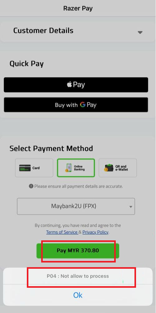 Issue - Fiuu Gateway Error Code "P04 : Not allow to process”