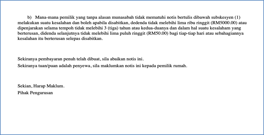 Name of Reminder Type (in Malay language, e.g. Notis Peringatan Tunggakan Pertama) |