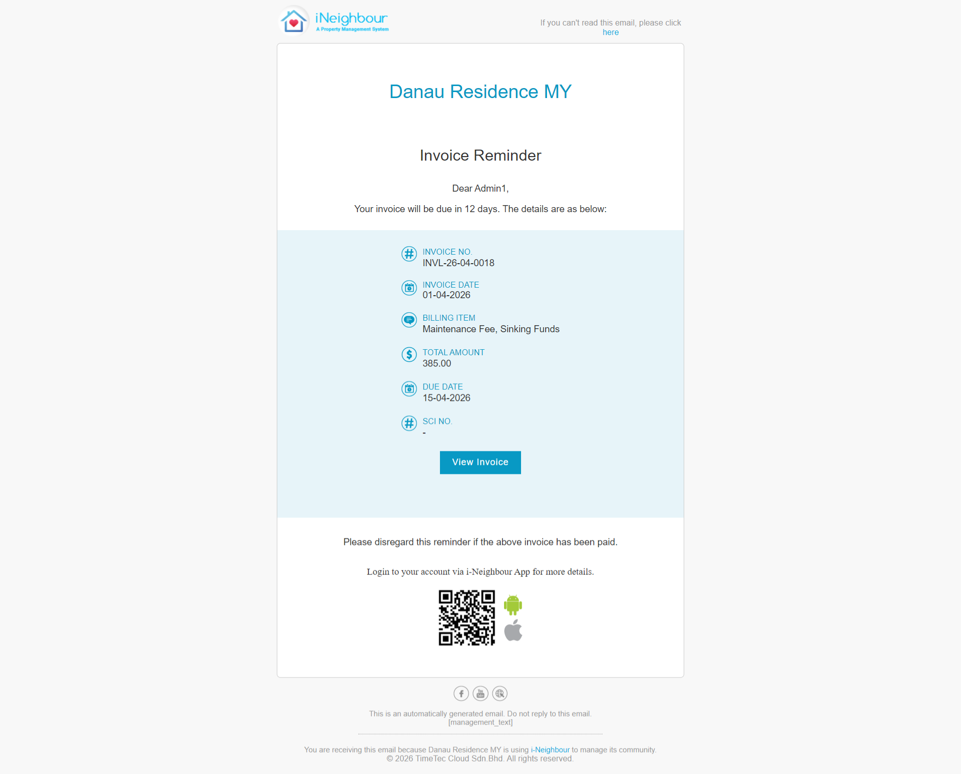 Action Link: A "View Invoice" button that users can click to open the invoice as a PDF.