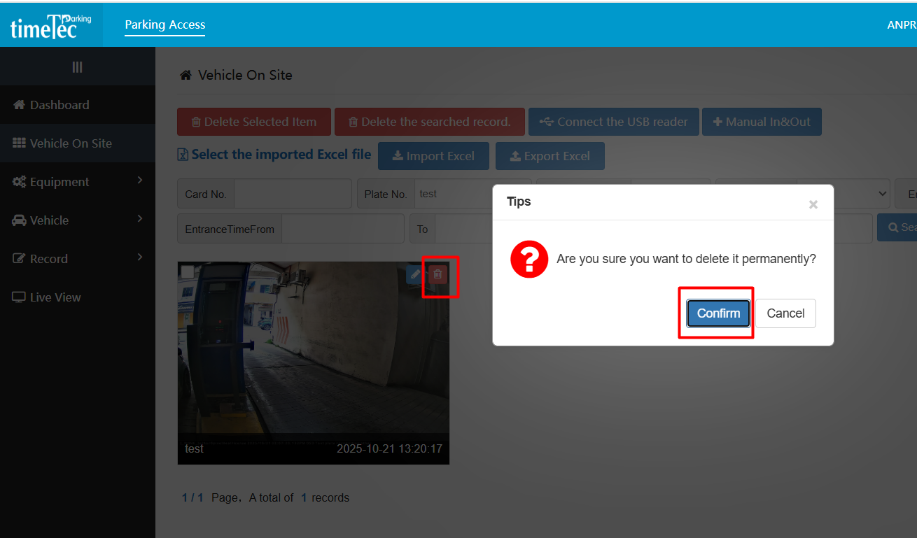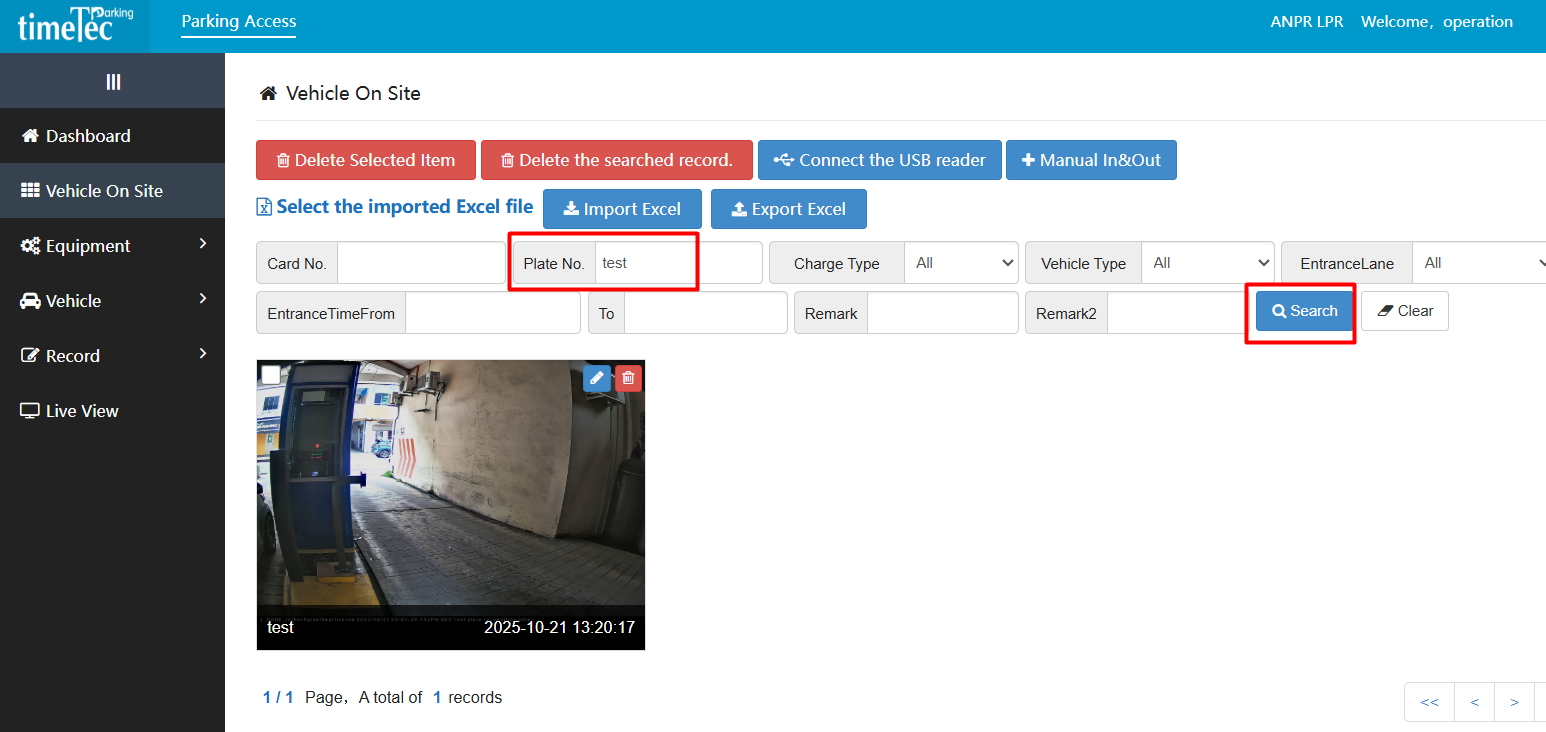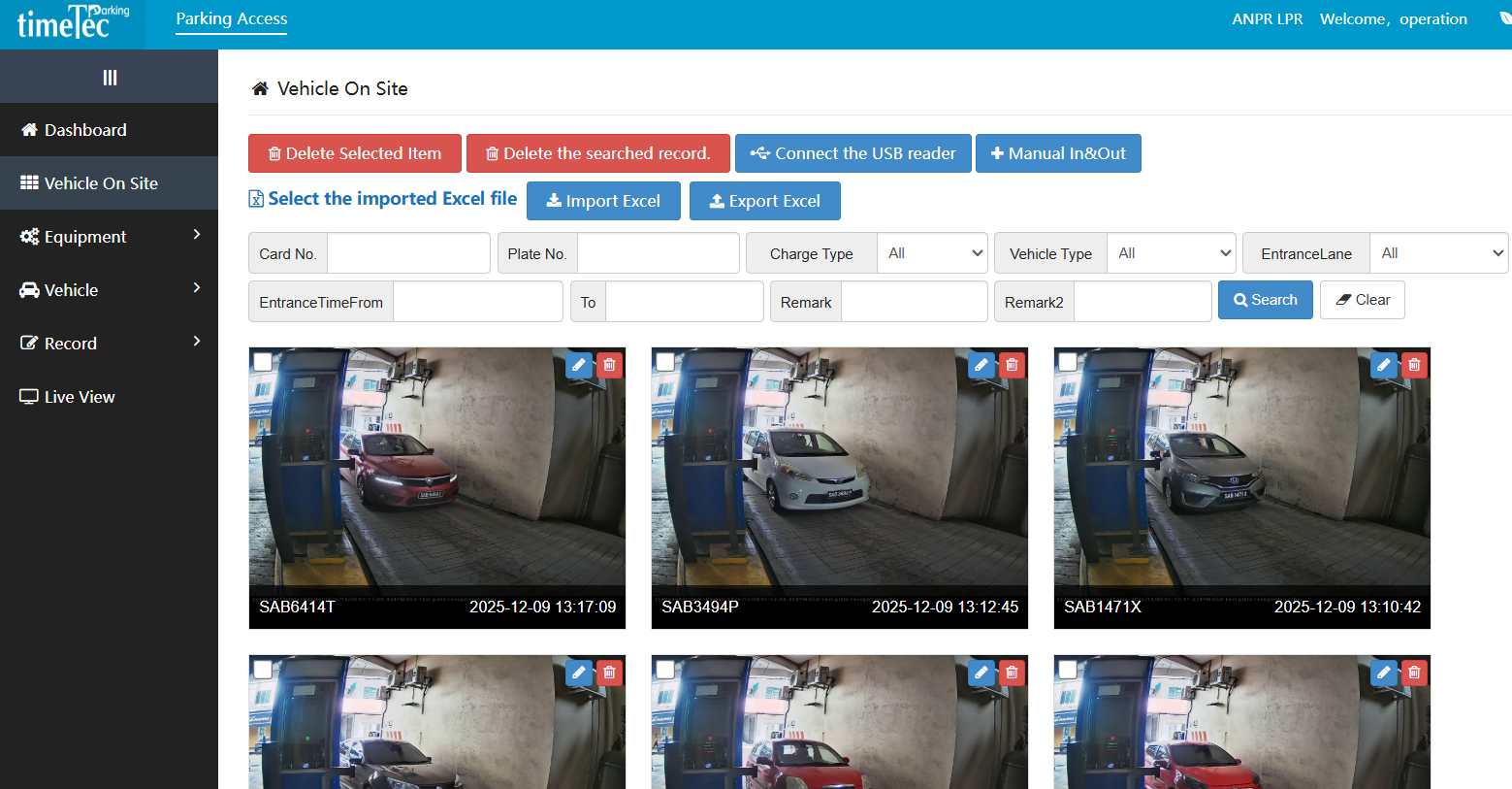 Process1. Log in to TimeTec Parking LPR System > Navigate to the On-Site Vehicle Page
