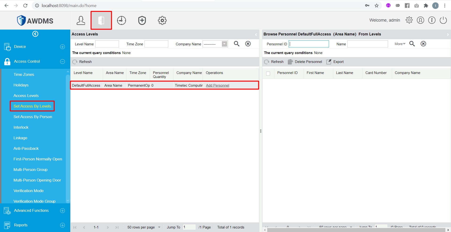 5. Upon completion, go to AWDMS, click on the Door icon> select Set Access By Levels. You shall then see the Access Level which you have created from the Ingress software and will be updated inside the AWDMS.