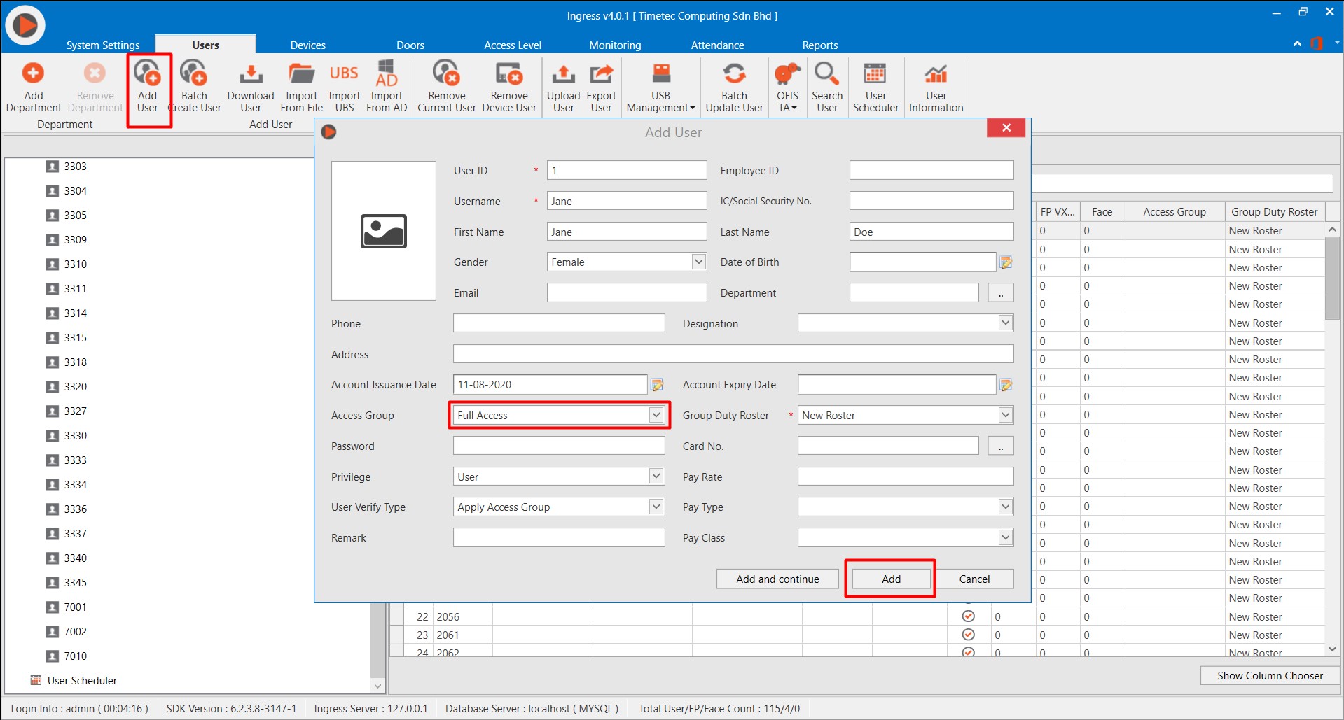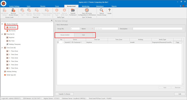 Enrolling users into Smart AC1/ Smart AC1-TD/ Smart AC1-FTD/ FaceID 5/ FaceID 5-TD/ FaceiD 5- FTD before installing TimeTec AWDMS and Ingress software might lead to problems of downloading user transaction data from the terminal(s). This is due to not having configured an access level for each user. Follow the steps below to overcome this difficulty: