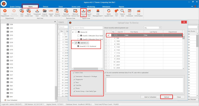 4. Go to User Tab and click Upload User to upload the newly created user to AWDMS.