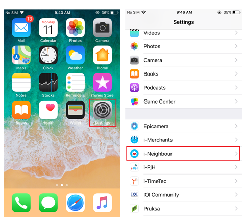 3. Choose i-Neighbour.4. Turn on all functions to receive all notifications from i-Neighbour.