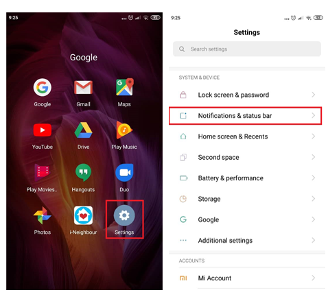Notifications Setting for Android1. Go to Setting.2. Find Notifications & status bar.