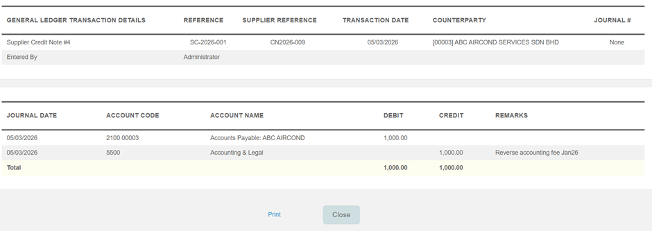 A. How to Enter Supplier Credit Note (Direct Select GL Account)