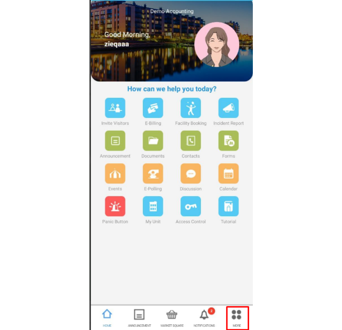 Login to i-Neighbour App and tap on “More” icon as the below example: