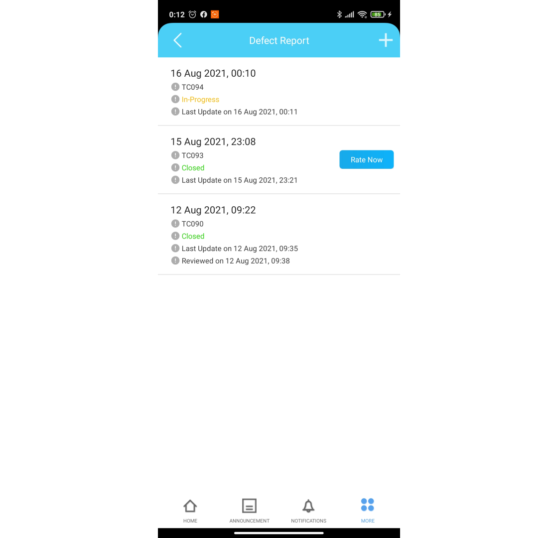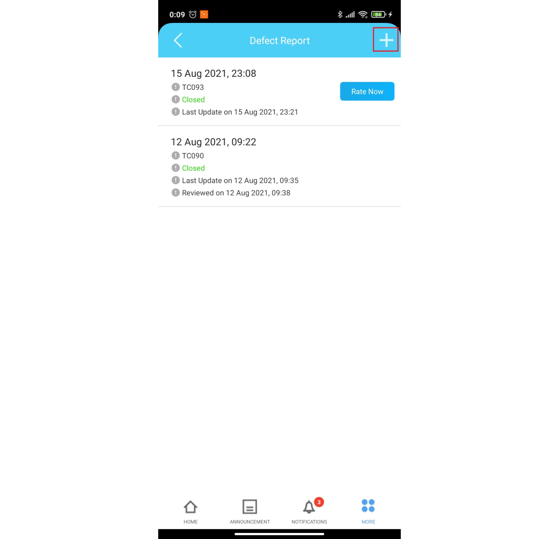 Step 2: To lodge a new Defect Report, tap on the ‘+’ icon.