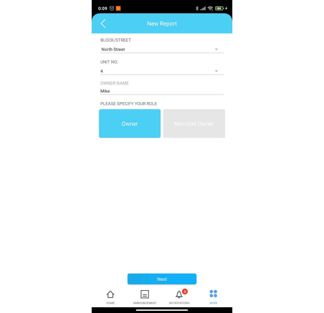 1. Tap on "More" then under Developer Management, tap on "Defect Report". 2. Click ‘+’ icon at top right to create new defect 3. Select Block/Street and unit number. Click ‘Next’ 4. Select defect type, item, location and fill in remark. Admin can ...