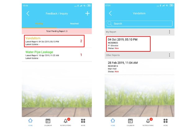 4:3 - All the reported items will show in the folder (Folder will be created automatically based on incident reported by unit owner)