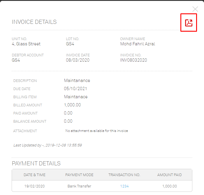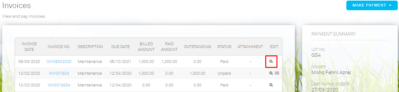 3. Owners can view details just by clicking on the invoice number to view the original invoices.