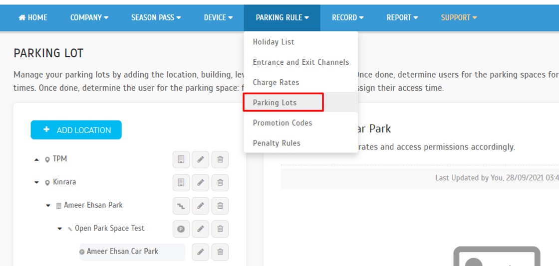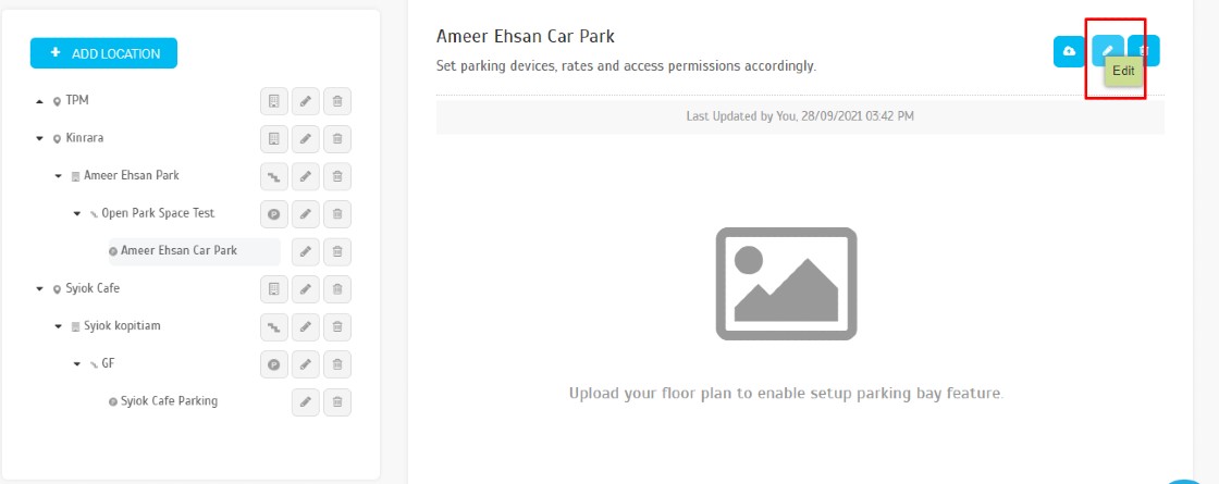 - Select added Car Park > click Edit