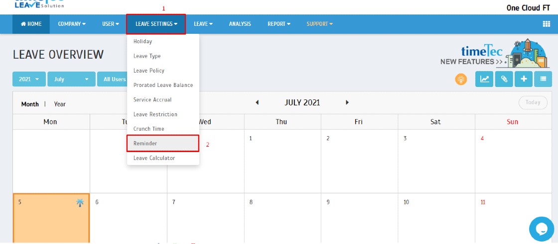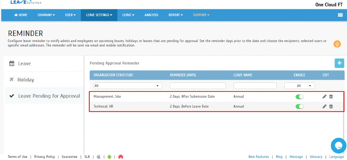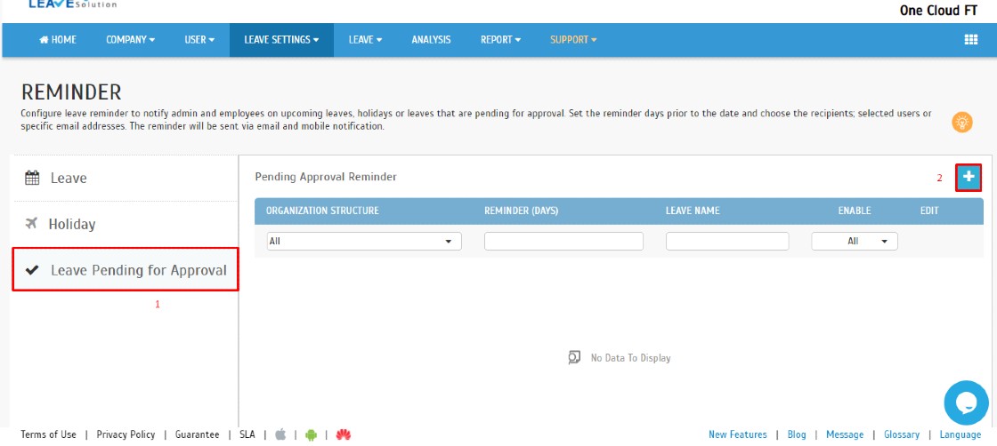 1. Go to Leave Settings > Reminder