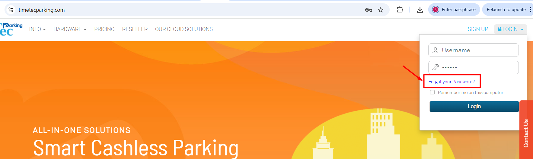 For users who have forgotten their login password or want to update it for security reasons, the TimeTec Parking website provides a simple and secure way to reset your password. Follow the steps below to regain access to your account.