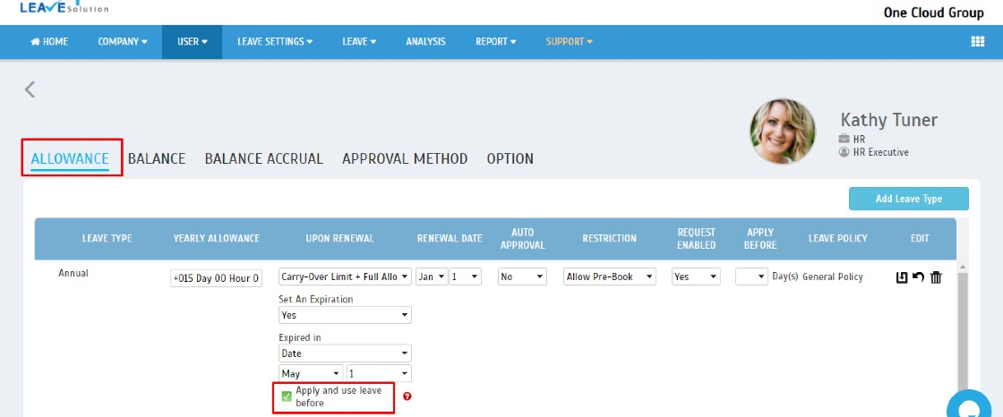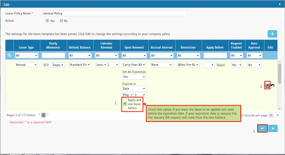 Remark : This option only shows up when the leave type is carried over with an expiry date.