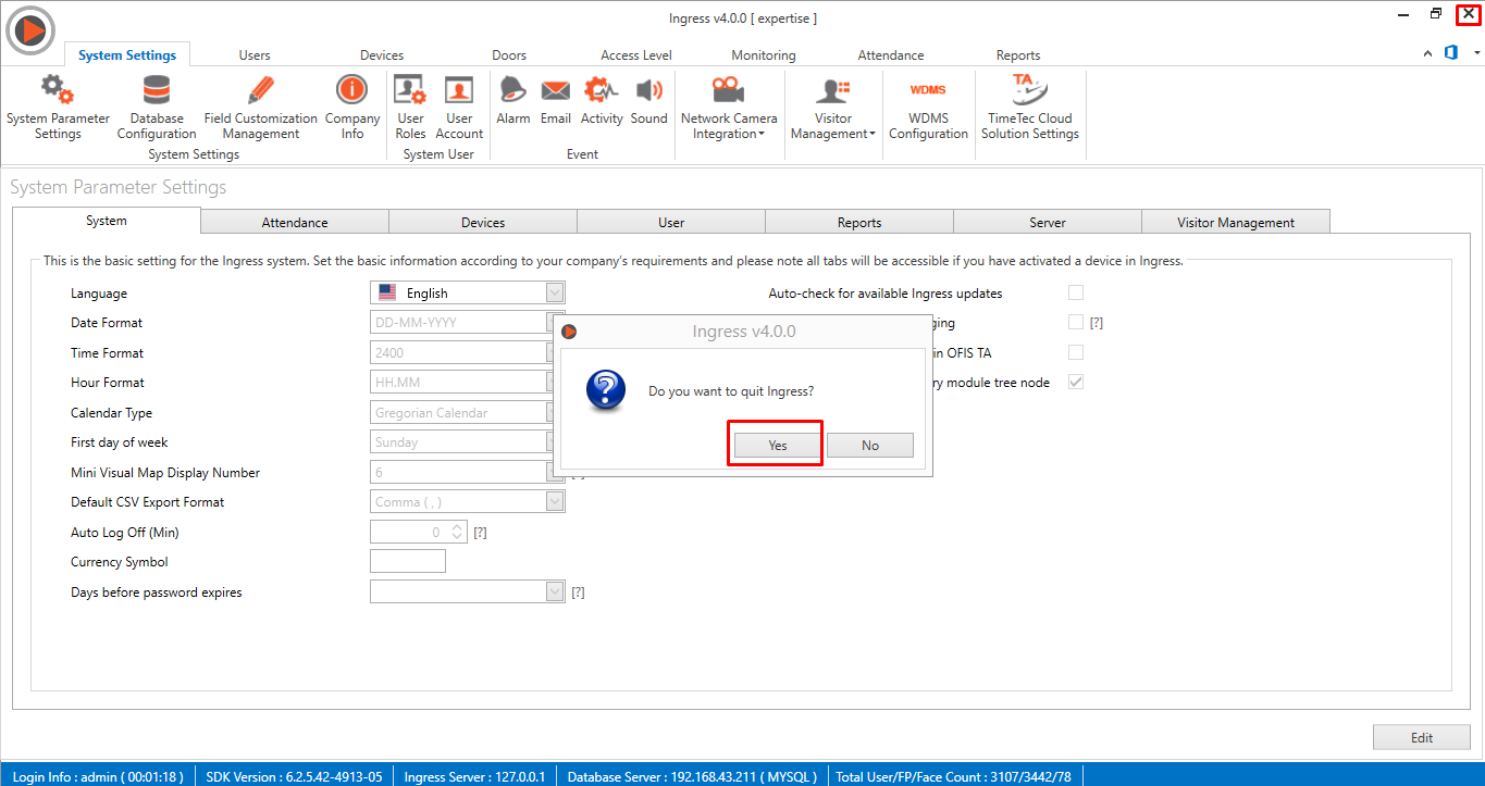 In order to solve this login issue, please make sure to logout the Ingress server software first. Go to Ingress server PC > Close Ingress software > Shut Down Ingress server. After you have successfully logout from the Ingress server, you may proceed to login to the Ingress client using the Ingress server login credential.