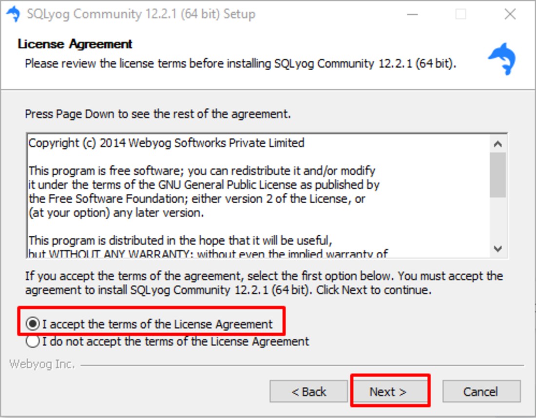 2. Please follow the steps below for the SQLYog Community software installation process.