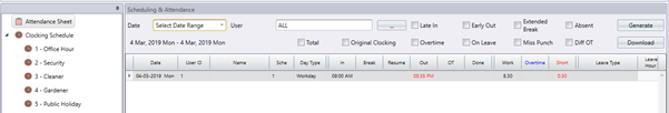 By setting this, the Attendance Sheet will deduct 30 minutes if any of the users came in late more than 15 minutes. The sample of result on the attendance sheets after applying the setting above is shown below.