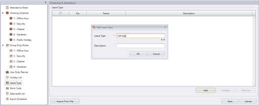 1. To set the Half Day setting, you need to make sure that Half Day Leave has been added into the Leave type. If you haven’t done this step, you need to go to Leave Type and add Half Day as one of the leave types in the system.