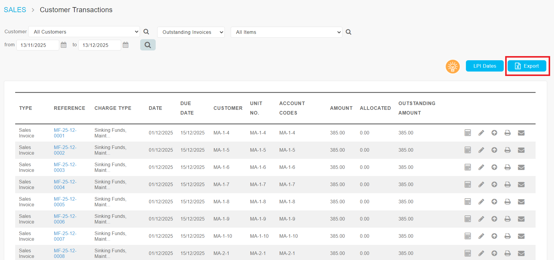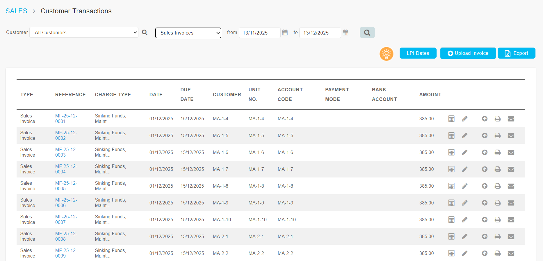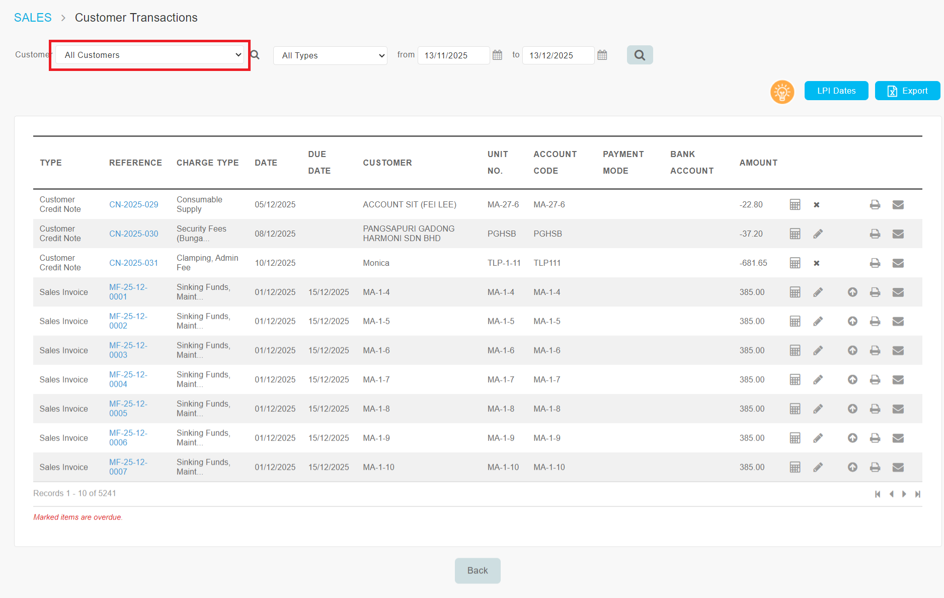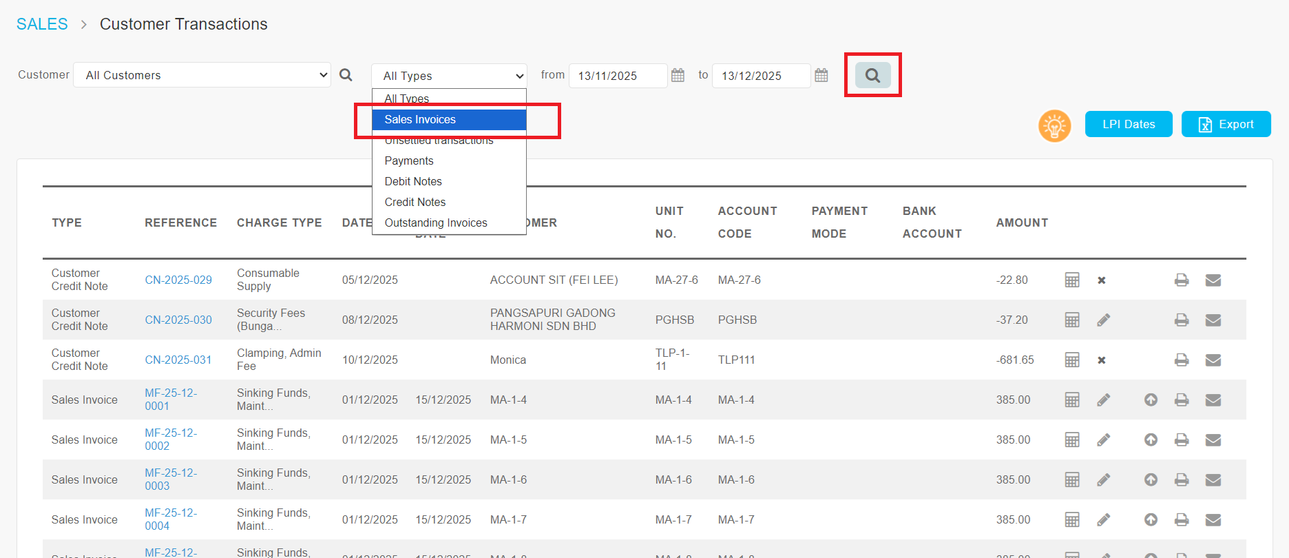 If you wish to view invoice records, you can select either “Sales Invoices” transaction
