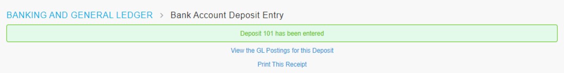 This pop-up message will appear when you have successfully recorded the Bank Deposit.