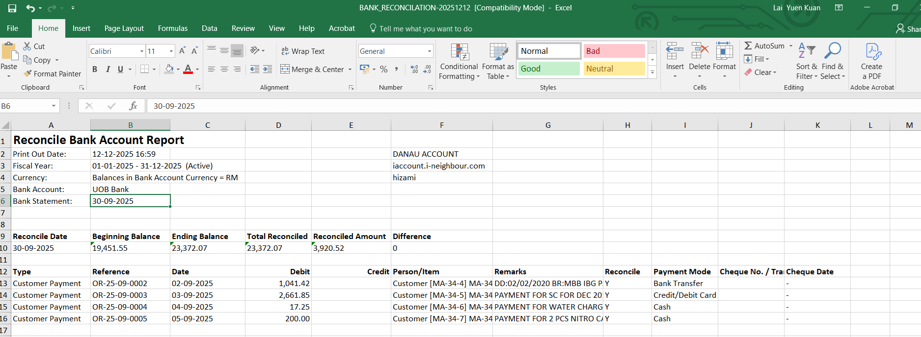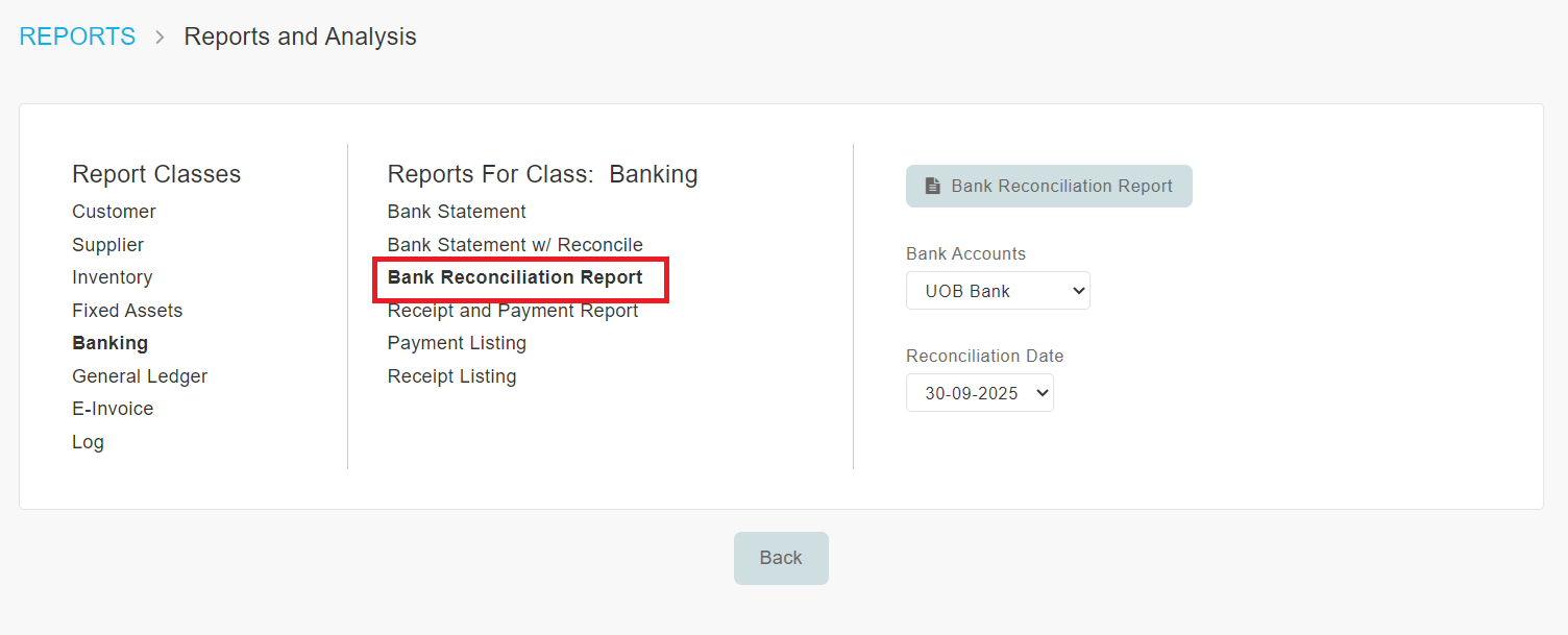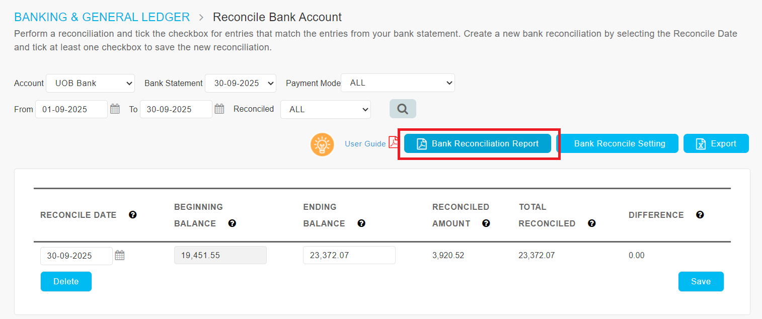 download the Bank Reconciliation Statement by clicking the “Bank Reconciliation Report”