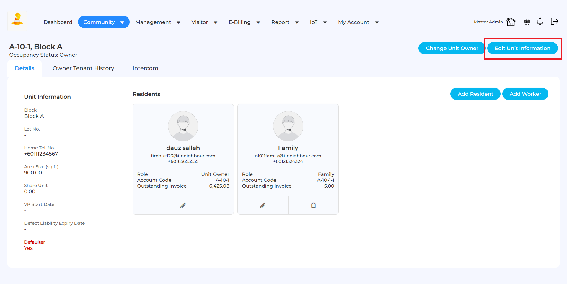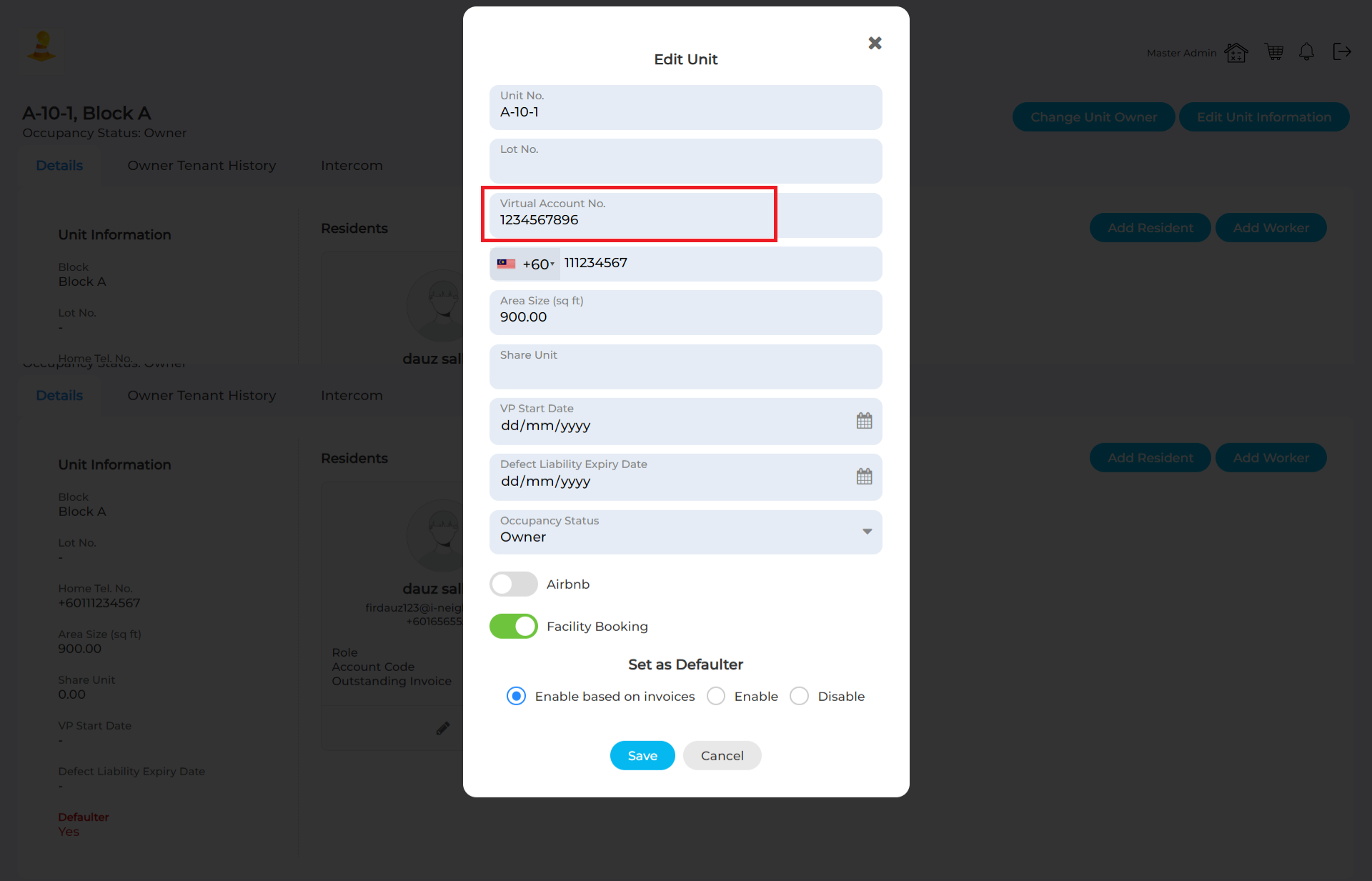 click on ‘Edit Unit Information’ to review the Virtual Account Number
