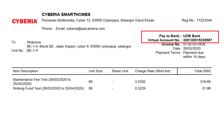 5. Once step 2 and step 4 is done, the Virtual Account Number will be displayed on the debtors’ invoices.